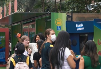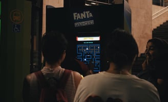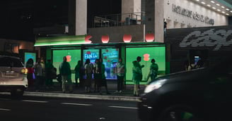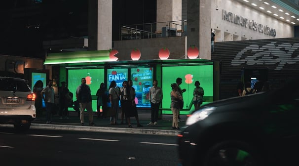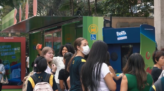 cenografia em um ponto de ônibus para ação Fanta Pacman